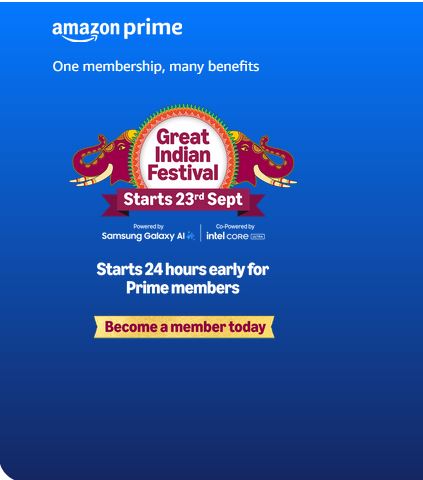 Unlock 24-hour early access to jaw-dropping deals, lightning-fast delivery, and exclusive “Prime Dhamaka Offers” across fashion, electronics, home essentials, and more. Plus, enjoy blockbuster festival releases on Prime Video in multiple languages—from mythological epics to family entertainers. With Amazon Prime, this festive season becomes smarter, faster, and way more rewarding.